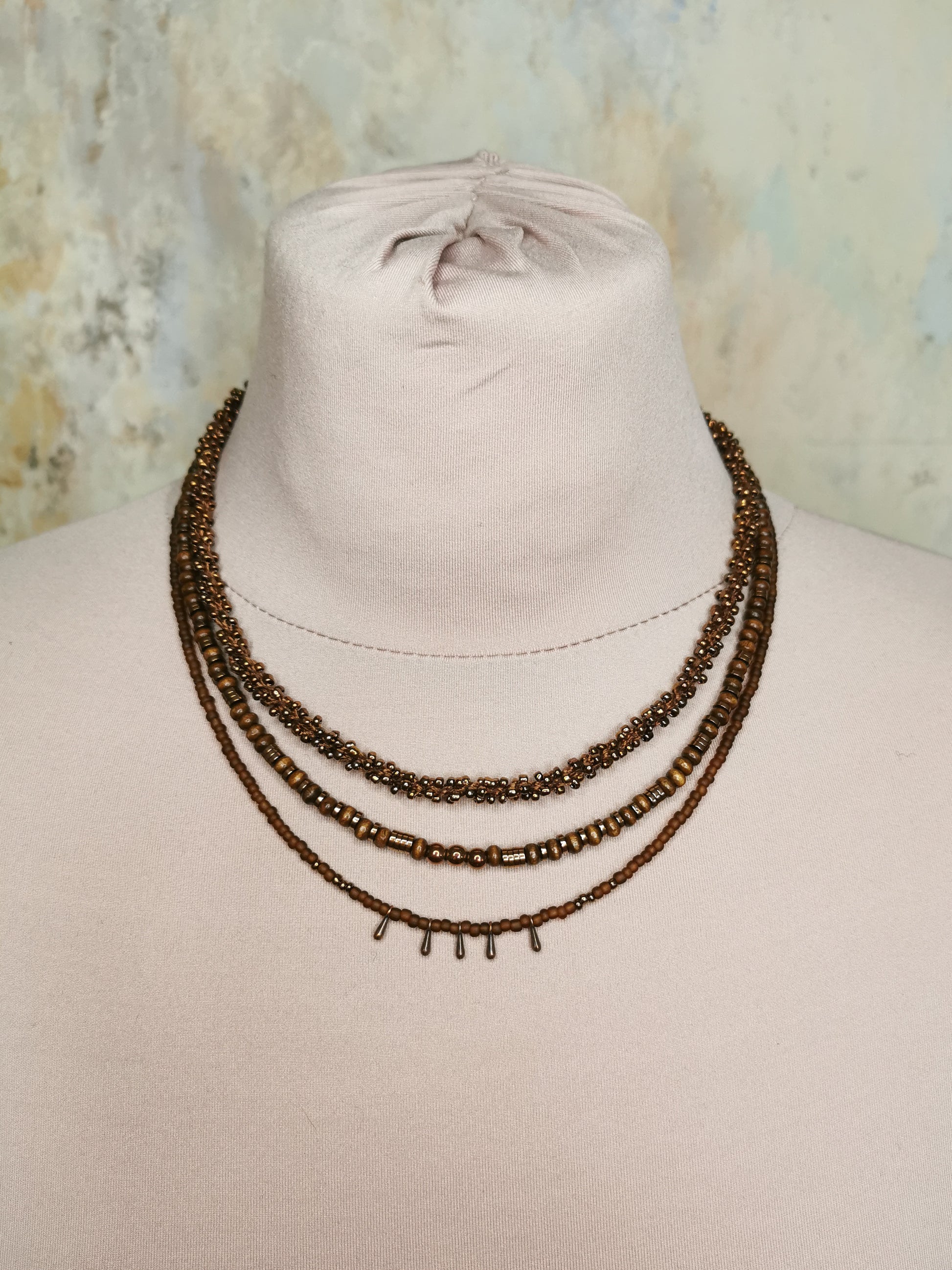 This minimalist seed bead multistrand necklace is the ideal accessory for anyone who loves the simplicity of minimalist design combined with the rich texture of boho style. Perfect for layering or wearing solo, this necklace set is a versatile addition to your jewelry collection.