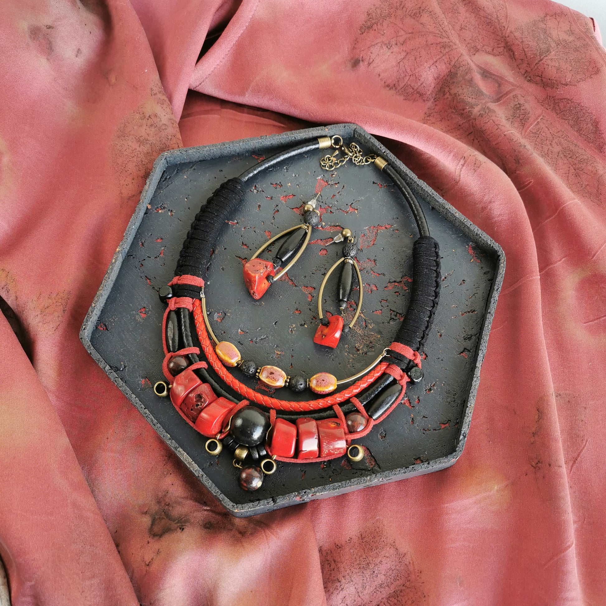 Tribal bead and cord jewelry set